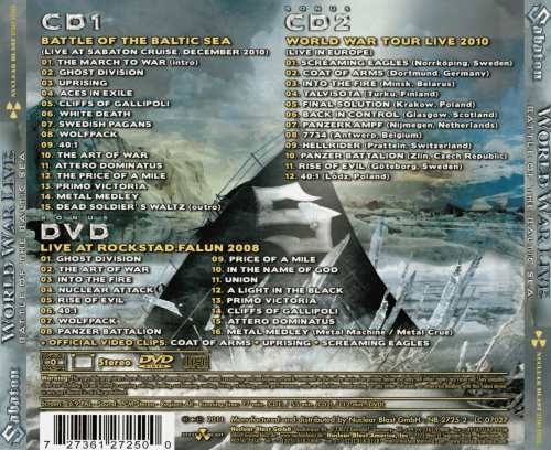 Tracklist: CD1: Live At Sabaton Cruise' 2010: 01. The March To War (Intro) 02. Ghost Division 03. Uprising 04. Aces In Exile 05. Cliffs Of Gallipoli 06. White Death 07. Swedish Pagans 08. Wolfpack 09. 40:1 10. The Art Of War 11. Attero Dominatus 12. The Price Of A Mile 13. Primo Victoria 14. Metal Medley 15. Dead Soldiers Waltz (Outro)