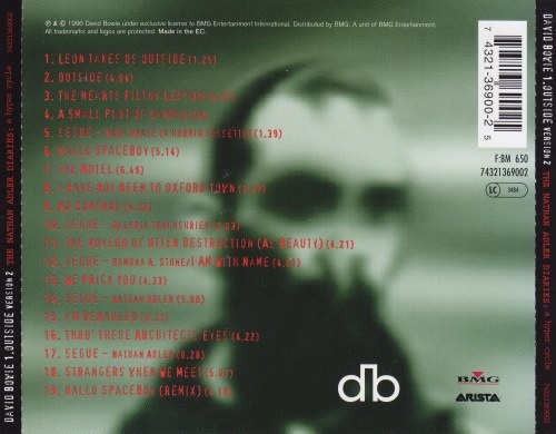 1.Outside: vers.2: 01. Leon Takes Us Outside 02. Outside 03. The Hearts Filthy Lesson 04. A Small Plot Of Land 05. Segue - Baby Grace (A Horrid Cassette) 06. Hallo Spaceboy 07. The Motel 08. I Have Not Been To Oxford Town 09. No Control 10. Segue - Algeria Touchshriek 11. The Voyeur Of Utter Destruction (As Beauty) 12. Segue-Ramona A. Stone / I Am With Name 13. We Prick You 14. Segue - Nathan Adler 15. I'm Deranged 16. Thru' These Architects Eyes 17. Segue - Nathan Adler 18. Strangers When We Meet 19. Hallo Spaceboy (feat. Pet Shop Boys)